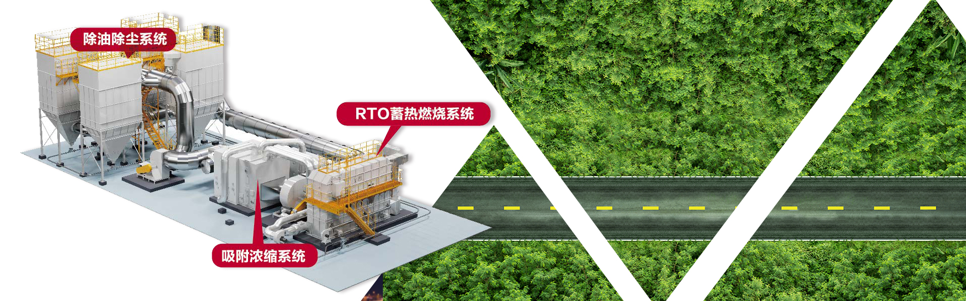 浓缩转轮将大风量、低浓度浓缩成小风量、高浓度有机废气,脱附产生的高浓度有机废气进入到热力氧化设备(CO或者RTO)进行氧化分解,最终分解为CO2和H2O。